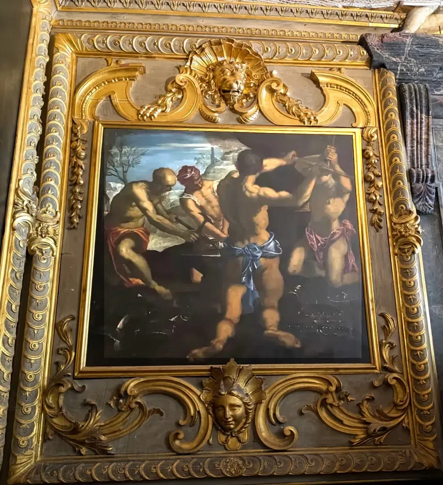 На стенах, по бокам от входных дверей, четыре полотна Тинторетто - «Вакх, Венера и Ариадна», «Минерва, отсылающая Марса от мира и процветания», «Кузница Вулкана», «Меркурий и Грации».