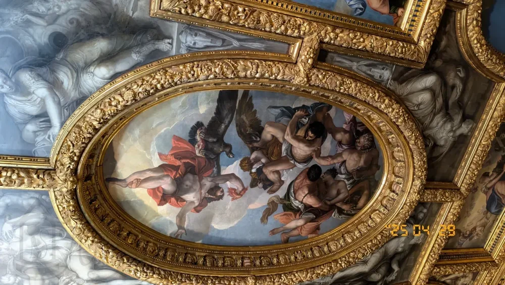 Центральное место занимает большая овальная картина кисти Веронезе «Юпитер мечет молнии в пороки» (1553-55 гг.). Главная особенность картины — смелое использование ракурсов, мастером которого был автор. Скульптурно округлые фигуры эффектно выделяются на фоне голубого неба.