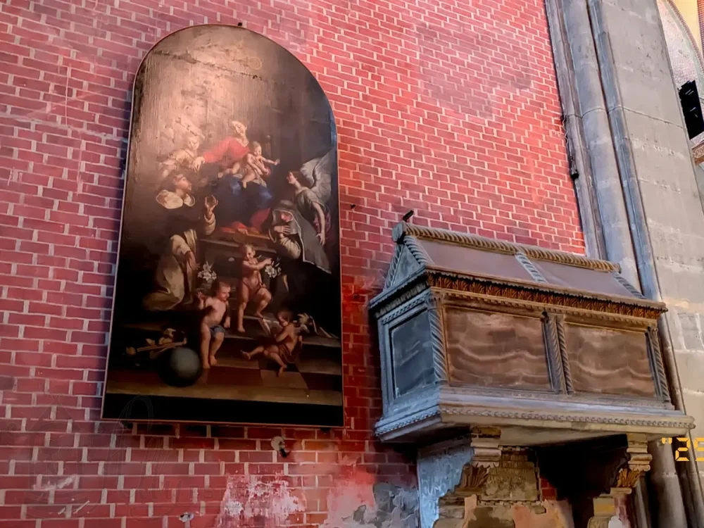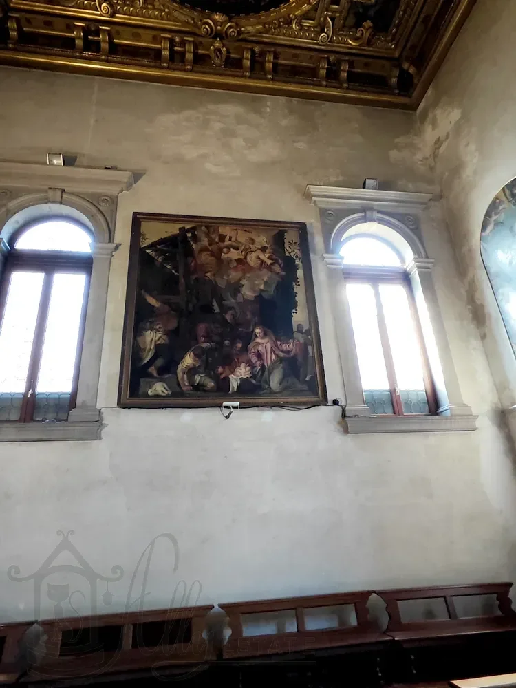 Большая фреска на стене датируется второй половиной XVI века и была написана Лоренцо Вечеллио, художником мастерской Тициана.