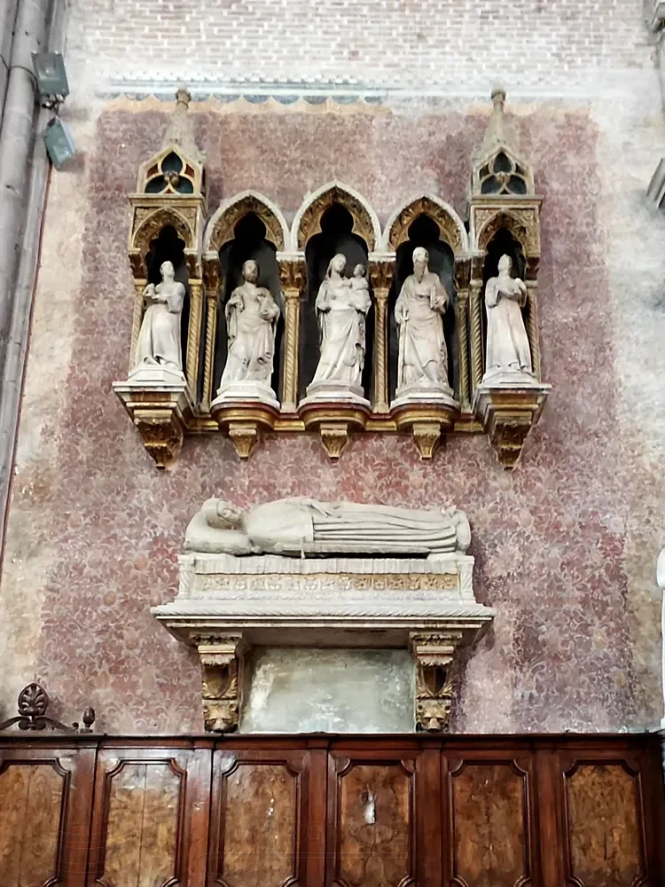 На правой стене часовни находится памятник полководцу Якопо Кавалли XIV века. Он изображен лежащим на саркофаге, голова, покоится на льве, у ног собака. На лицевой стороне саркофага символы евангелистов и ангелы.