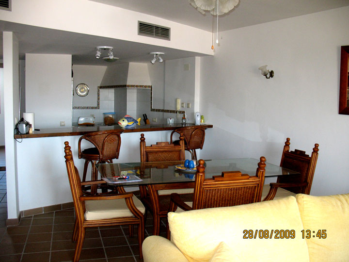 Электроплита с керамической поверхностью и четырьмя комфорками, духовкой и вытяжкой. Полноразмерный холодильник с отдельной морозильной камерой. Стиральная машина, обычно встроенная прямо в кухонную мебель, но в некоторых случаях, может располагаться в отдельном служебном помещении, там, же где и бойлер горячей воды. Посудомоечная машина, в общем-то, не является обязательным элементом оснащения апартаментов предназначенных для сдачи в аренду в Испании. Но в комплексах в урбанизации Пунта Прима посудомоечными машинами оснащены практически все апартаменты. Она так же или встроена или стоит в отдельном помещении.