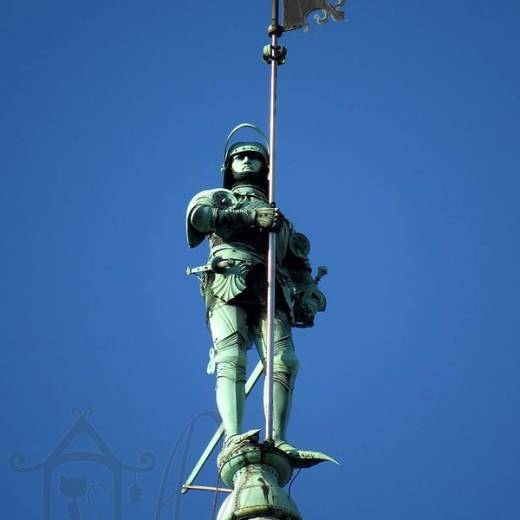 Над входами в большую башню находятся три горельефа с конными фигурами императоров Франца Иосифа I, Рудольфа фон Габсбурга, Рудольфа IV. По обе стороны от главного входа установлены фигуры Аллегории силы и Аллегории справедливости.