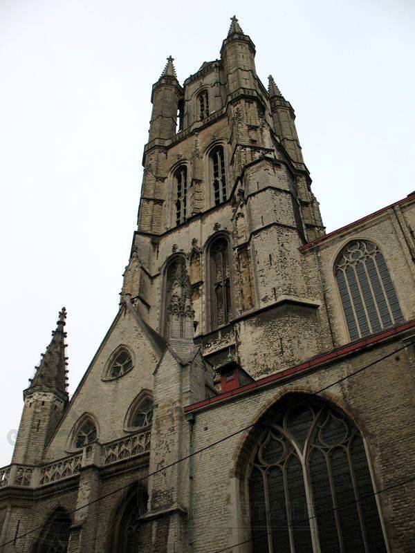 Готический современный собор Святого Бавона опирается на четырнадцать колоннами с арочными и крестообразными сводами в боковых проходах и в боковых часовнях, разделенных стенами. Впрочем, внутрь собора мы не зашли, не помню уже почему. Скорее всего время было не урочное, службы не было и вход был закрыт.