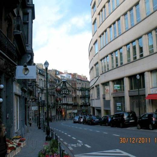 От площади Гранд Саблон в сторону центра идем по недлинной улочке Лебу - Rue Lebeau, названной в честь бельгийского политика времен обретения страной независимости. Улочка интересна своей эклектикой, всю ее правую сторону, по ходу движения к центру, занимает одно огромное здание современной (бетон, стекло) постройки, какой-то бизнес-центр. Зато противоположную сторону занимают исторические домики в характерном для Брюсселя стиле.
