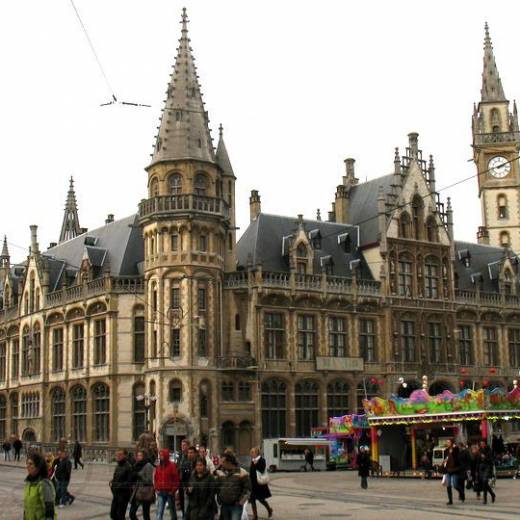Продолжаем прогулку по старинному бельгийскому (фламандскому) городу Гент. Выходим на историческую площадь Коренмаркт, где когда-то шла оживленная торговля зерном, а сейчас находится рай для туристов, которые любят историческую голландскую архитектуру. Самые заметные здания, обращенные на площадь Коренмаркт – собор Святого Николая и здание, построенное для Главного городского почтамта.