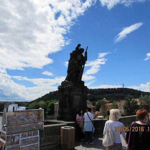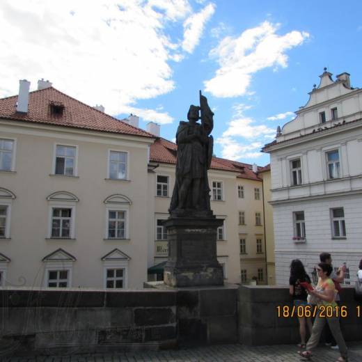№16 Святой Ян Непомуцкий. Самая старая и самая популярная из скульптур Карлова моста изображает святого Яна Непомуцкого. Вокруг головы Непомуцкого - пять звезд, по преданию, появившиеся над водой в том месте, где его утопили