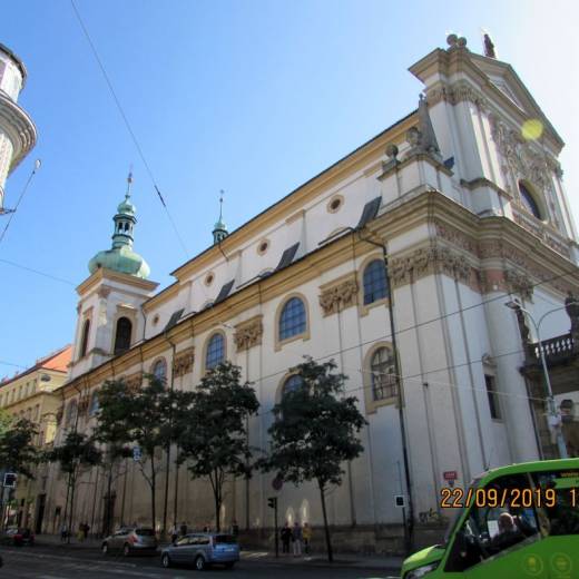 Почти в центре Карловой площади в Праге, на углу Йечной улицы, находится еще одно интересное здание — раннебарочный костел Св. Игнатия Лойолы, построенный в 1670 г. для ордена иезуитов. Фасад костела украшает скульптура его святого покровителя, окруженная золотым ореолом.