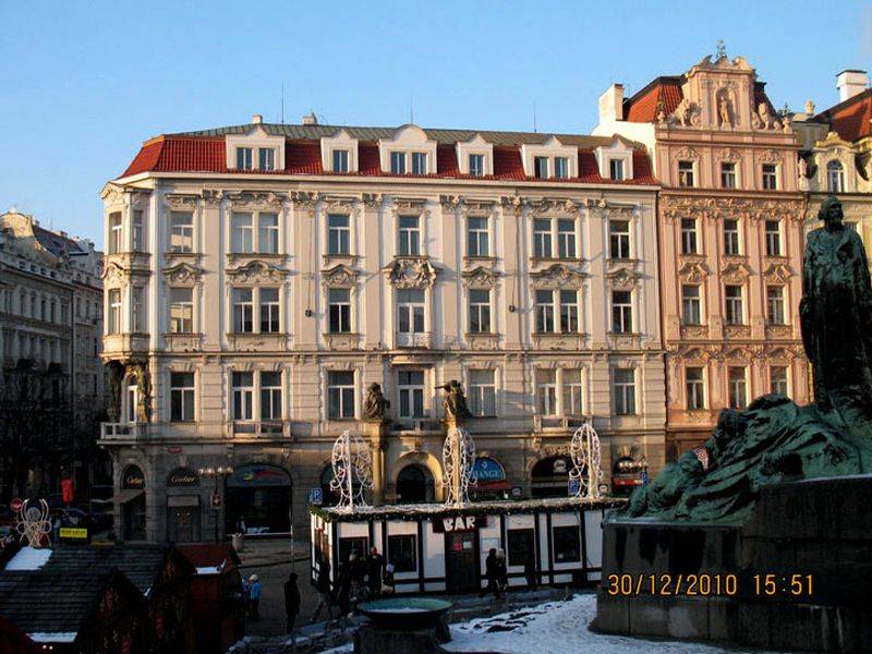 Если южная сторона Староместской площади о которой говорится в предыдущем отзыве, застроена жилыми домами, значительно реконструированными в течении срока их жизни, то на восточной и северной ее сторонах расположились дома, сохранившие до наших дней свой исторический облик и назначение.