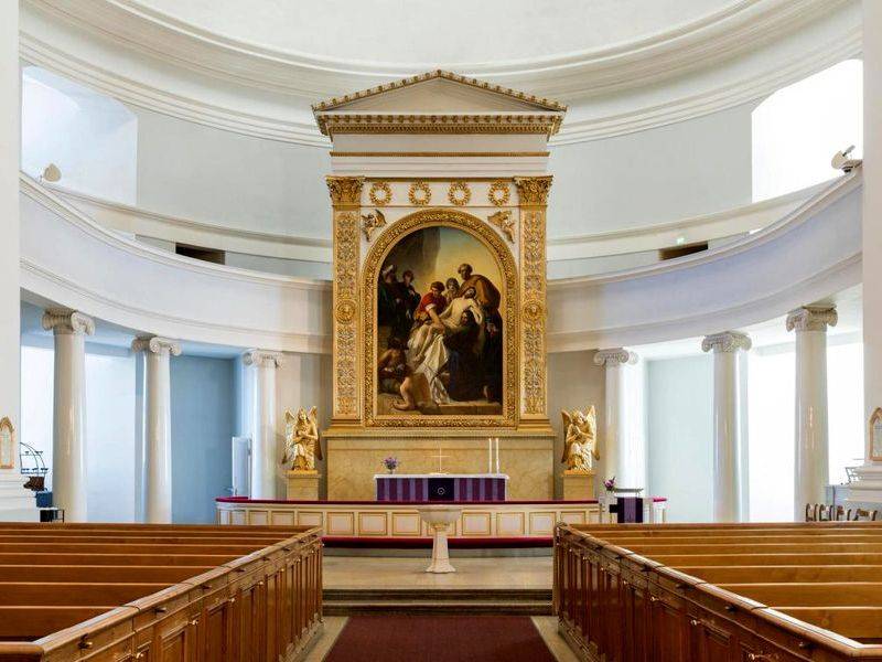 Соборный зал Кафедрального собора Хельсинки украшают статуи реформатора Марти Лютера и его последователей Филиппа Меланхтона и Микаэля Агриколы. Они напоминают гостям об истории лютеранской церкви вообще и Финляндии в частности.