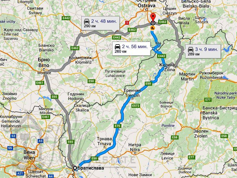 От дороги из Братиславы к маленькому чешскому городку Фридек-Мистек каких-либо подвохов мы не ожидали. Поэтому особо карту не рассматривали, положившись на навигатор. Расстояние от центра Братиславы до нашего отеля во Фридек-Мистеке он определил в 260 км и пообещал что доберемся до цели не более чем за три часа. И в предвкушении скорого и приятного ужина мы отправились в путь.