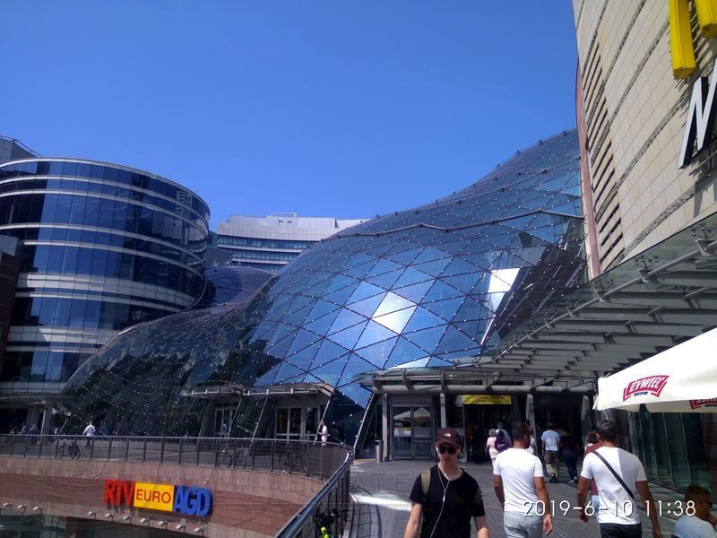 Центральная часть торгового центра покрыта огромной стеклянной крышей. Это наиболее характерный элемент комплекса. Она не плоская, а напоминает пузыри мыльной пены или несколько установленных рядом юрт кочевников. Архитектура безусловно авангардная и может нравиться не всем. Есть мнение, что это слишком причудливо и вносит дополнительный дисбаланс в и без того хаотичный центр Варшавы.