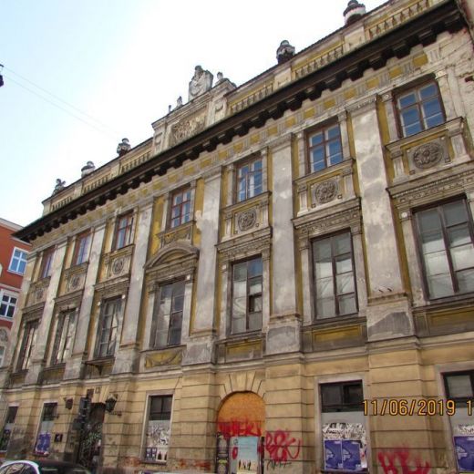 Тем не менее первый дом слева, хоть и исторический, но не слишком. Это «Feniks Building» - построенный в 1928 году доходный дом и штаб-квартира для Венской страховой компании «Феникс». На углу установлена эмблема дома — алюминиевая скульптура женщины.