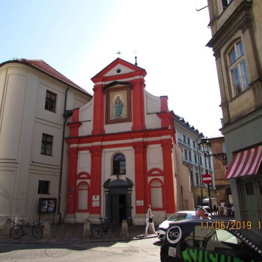 Костел Преображения Господня (Kościół Przemienienia Pańskiego) уже не находится на улице Святого Яна, но замыкает ее перспективу по ходу нашего движения. Это исторический костел, часть римско-католического монастырского комплекса ордена Пиаристов.