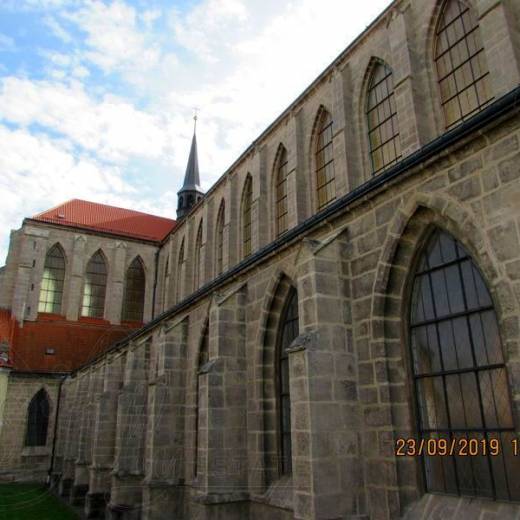 Как я уже начал писать, на этот день мини-отпуска в Праге, мы запланировали поездку в Кутну-Гору. Начнем с достопримечательностей в районе Седлец. Здесь расположен собор Вознесения Девы Марии и Святого Иоанна Крестителя бывшего Монастыря цистерцианцев и Костница в Часовне Всех Святых в бывшей кладбищенской церкви монастыря.