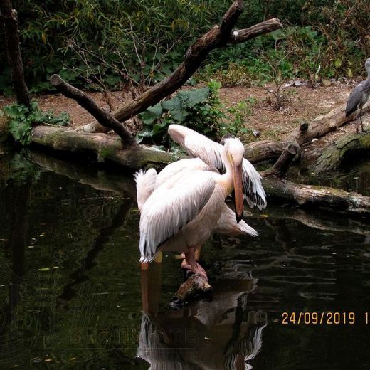 Далее отправляемся посмотреть на пеликанов (28). Самый распространенный представитель этих крупных водно-болотных птиц - «Белый пеликан (Pelecanus onocrotalus)».