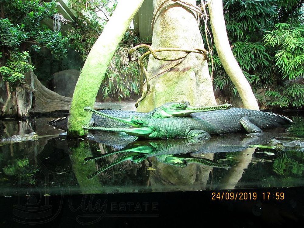 Индийский гавиал (Gavialis gangeticus), интересный, не совсем обычный вид крокодила (или похожего зверя), проживает в павильоне, отмеченном номером (31). Общая концепция павильона соответствует среде обитания гавиалов - большой реке, включая спокойные воды, более глубокие воды, течения и песчаные пляжи, где с помощью инфракрасных излучателей поддерживается нужная температур. Пресноводные черепахи и мелкие виды рыб делят с ними территорию.