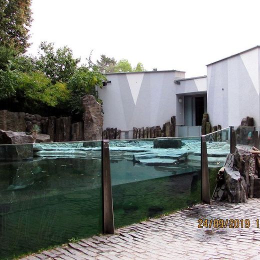 Завершаем прогулку посещением Павильона пингвинов (34) Пражского зоопарка, обстановка которого переносит посетителя на скалистые берега Южной Америки. Закрытая экспозиция (234 кв.м.) состоит из большого бассейна и суши с искусственной скалой, в которой есть гнездовые ниши для отдельных пар пингвинов.