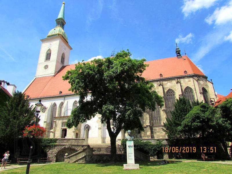 Завершение описания первой части прогулки в статье «2019.06.18-1 Мост SNP и начало прогулки по Братиславе, Словакия» пришлось на верхнюю часть Рыбной площади, в паре сотен метров от собора Святого Мартина (Dóm sv. Martina).