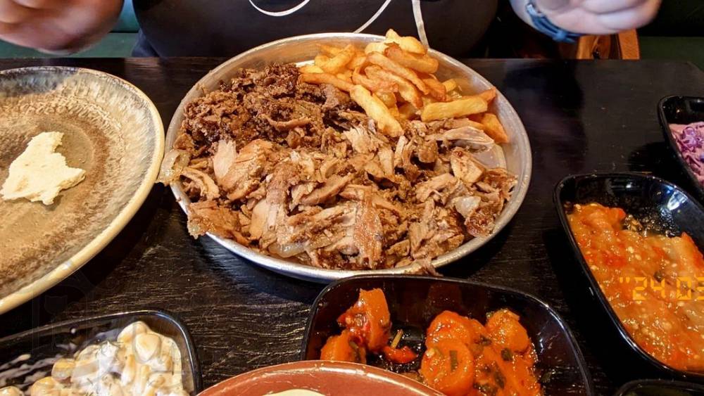 По факту — в этом месте прекрасно кормят мясными и овощными блюдами с местным колоритом. Когда принесли меню, мы конечно несколько офигели от цен, но все же решились заказать по порции шавермы и кебаба ( по 100 шекелей или €25 за блюдо.