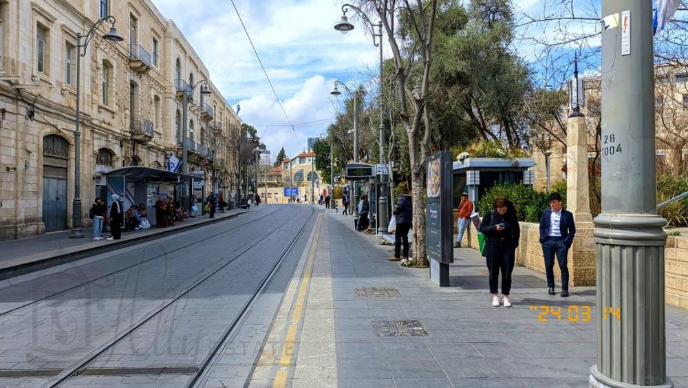 В сторону Старого города трамвай идет по улице Jaffa одной из самых длинных и старых главных улиц Иерусалима . Она пересекает город с востока на запад и усеяна магазинами, предприятиями услуг и ресторанами. Вместе с улицами Бен-Йехуда и Кинг-Джордж она образует центральный деловой район города.