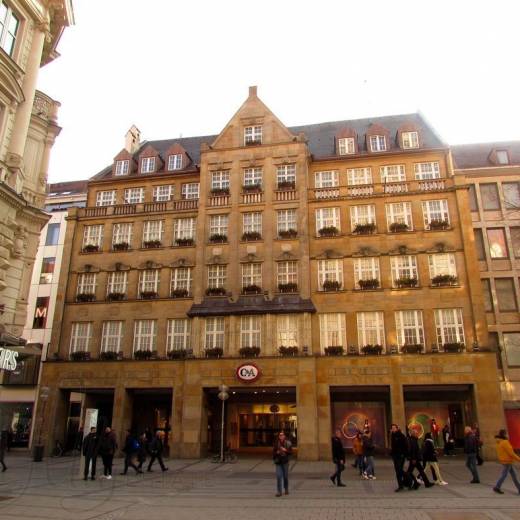 В XIX веке барочным резиденциям мюнхенских купцов на смену пришли универмаги, крупнейшим из которых является коммерческое здание Zum Schönen Turm, ныне Hirmer Herrenbekleidungshaus .