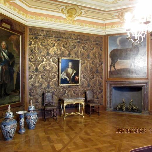 Среди сокровищ замка одна из самых важных коллекций охотничьих трофеев в Европе, богато украшенные гобелены из позолоченной кожи и «Перовая комната» с более чем миллионом цветных перьев.
