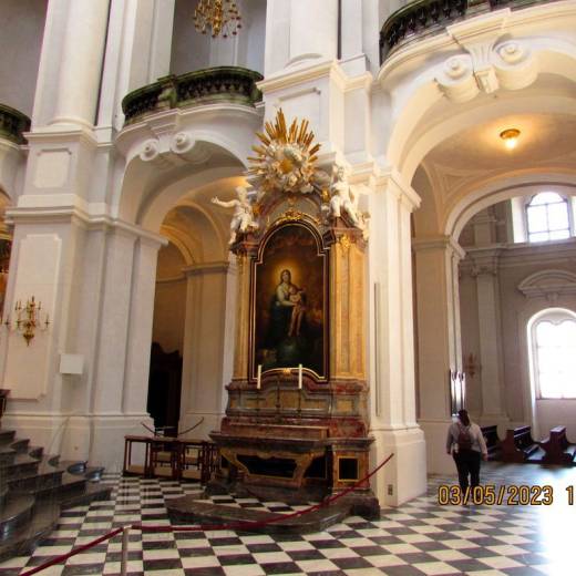 Правый проход ранее занимал алтарь святого Игнация Лойолы (1751 год), сожженный в 1945 году, ныне здесь более современный алтарь Девы Марии (1987). В люнете над алтарем поясной портрет Христа-учителя (1851 год), на задней стене придела скульптура святой Марии Магдалины (Кающаяся Магдалина).