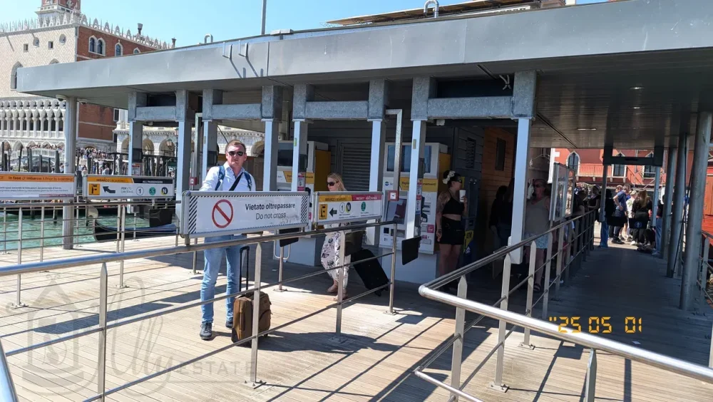 Вапоретто Маршрута 1 направления Лидо - Пьяццале Рома, которым проще всего добраться от Giardini, места нашего базирования, причаливает к дебаркадеру E. Он предпоследний по ходу, расположен неподалеку от канала перед Дворцом Дожей.