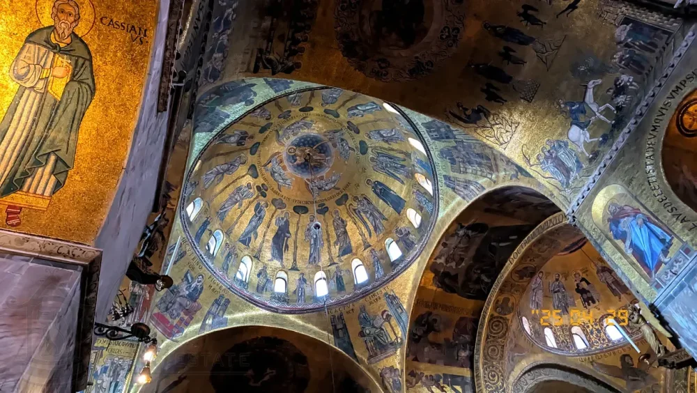 Ученые сходятся во мнении, что грандиозный иконографический план внутренних помещений Собора Сан Марко был завершен уже в течение XII века. Мозаики в верхней части собора рассказывают о событиях Нового Завета с великим посланием христианского спасения.