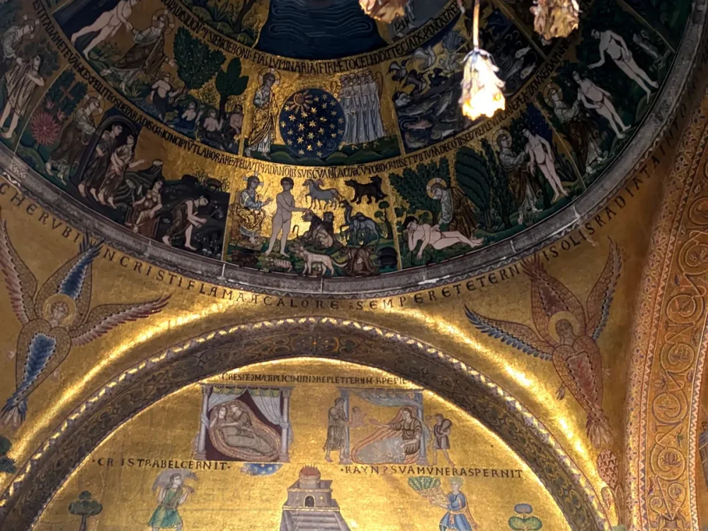 Мозаики в атриуме были добавлены позже, в XIII веке и отсылают нас к историям из Ветхого Завета, в частности книгам Бытие и Исход.