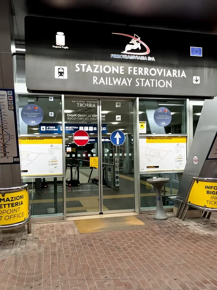 В моей статье про аэропорт и на сайте самого аэропорта расписаны способы добраться в Бари и на побережье. Но поздний прилет фактически оставляет один вариант добраться из аэропорта в Барлетту - электричка.