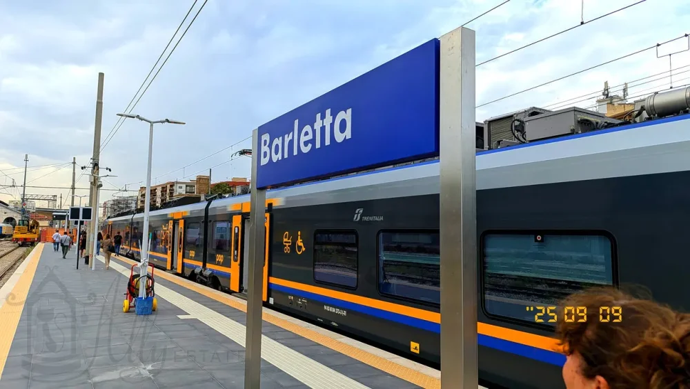 Этот автобус ведёт себя прямо как электричка и привозит вас туда куда привезла бы она сама, будь она на рельсах. В Барлетте автобус останавливается с той стороны ж. д. путей, где проходит улица Via Vittorio Veneto.