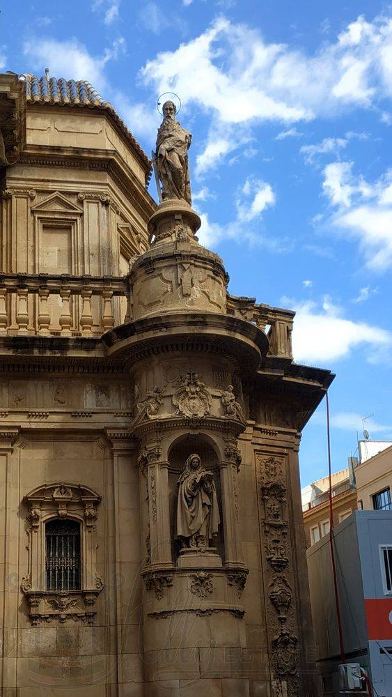 Когда-то фасад венчала большая статуя Сантьяго (апостола Иакова Великого) с крестом, поскольку традиция гласит, что апостол прибыл в Испанию через порт Картахены. Но из-за большого веса в 1803 году ее сняли, заменив крестом, который в свою очередь был разрушен землетрясением 1829 года.