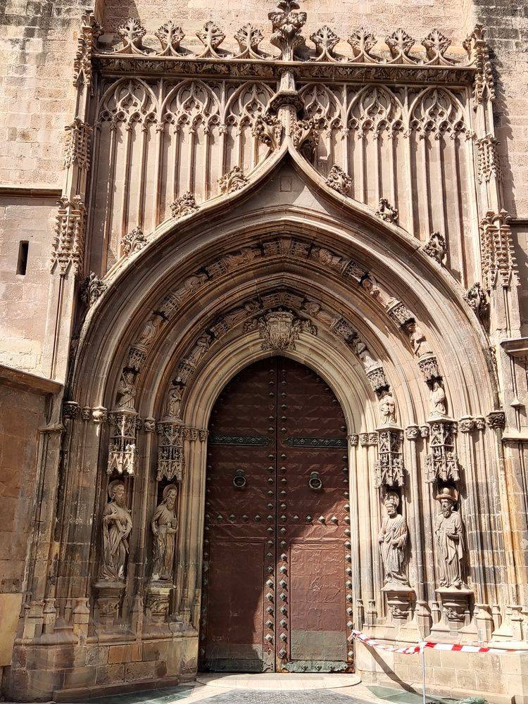 Правее башни находится красивый портал в стиле платереско, открывающий вход в трансепт с северной стороны. Он называется «Ворота цепей (Puerta de las Cadenas)» и условно может быть разделен на две части.