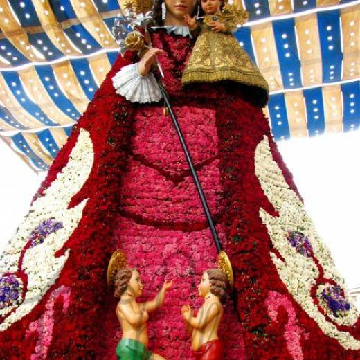 Море гвоздик, огромный красно-бело-розовый ковер из живых цветов и такая же мантия покровительницы – символ благочестия жителей города, прекрасный дар Святой Деве. Десятки тысяч горожан подносят букеты. Эту своеобразную демонстрацию обязательно сопровождают музыканты – их может быть до восьми тысяч.
