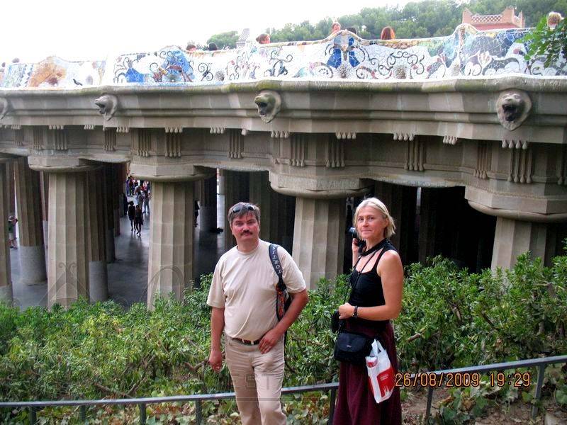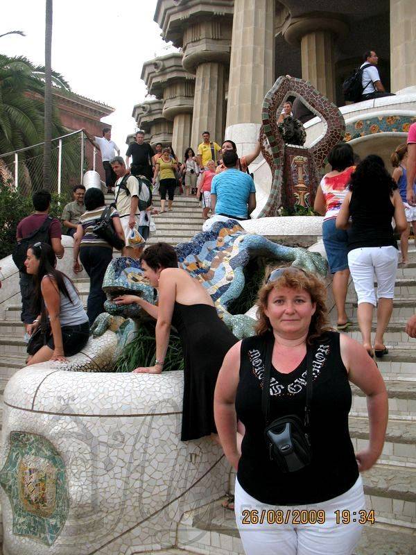 Это четвертая статья о прогулках по замечательному испанскому городу Барселона, состоявшихся 26 августа 2009 года. Мы уже побывали у Саграда Фамилиа, прошлись по бульвару Пасео Грасиа и половине Рамблы, а так же искупались в море. Теперь в Парк Гуэль с его пряничными павильонами, лестницей с драконом-саламандрой, колоннадой и чудо-скамьей вокруг главной площади.