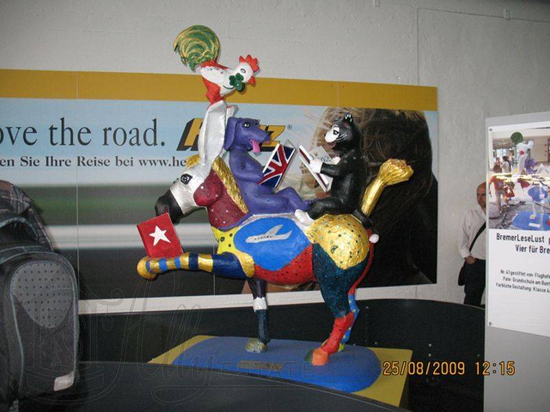 Правда благодаря оперативности Ryanair здесь потери времени оказались минимальными. Самолет, как это часто бывает, прилетел раньше расписания и в 11-15 мы уже получали багаж. В зоне выдачи багажа Rainair нас встретили Бременские музыканты, не лично конечно, а ввиде симпатичной скульптурной группы.