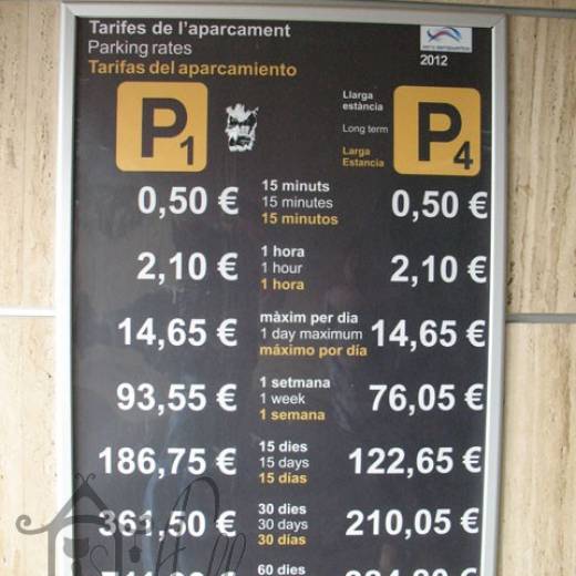 Стоимость парковки здесь так же составляет €14,65 в сутки для первых четырёх. А с пятых суток тариф снижается до €5,85 в сутки. Это в целом все равно негуманно. Особенно если сравнить со стоимостью билетов Райанэйр (Ryanair) из Валенсии в Пальма де Майорка, которые обошлись нам в €50,0 на двоих туда и обратно.