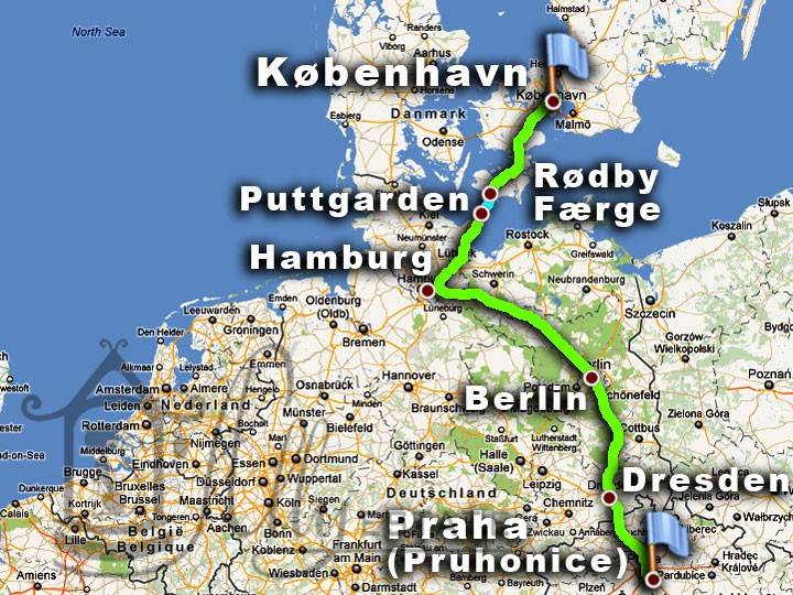 Пред-пред последний день нашего путешествия на машине по Европе из Санкт-Петербурга в Испанию, 19-е сентября 2011 года полностью посвящен возвращению. Отпуск заканчивается, пора и честь знать. Ещё один длинный перегон ожидал нас сегодня. Старт был дан в Пражском пригороде Пругонице (Чехия) затем дорога по Чехии, Германии и Дании, включая морской паром ночевка в центре Копенгагена. В завершение дня небольшая прогулка по этому неуютному и холодному городу.